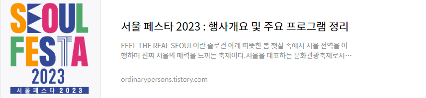 | 서울 페스타 2023 : 행사개요 및 주요 프로그램 정리 (23) | 2023.05.03 |