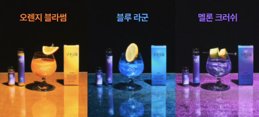 식품 스타트업 '오르트'에서 기존에 없던 신제품인 소주에 타서 예쁜 술로 만드는 '우주고래'를 출시했다.우리나라 국민 술인 소주에 이 제품을 직접 제조해 예쁘고 맛있게 즐길수 있다는 장점이 있는 술이다.