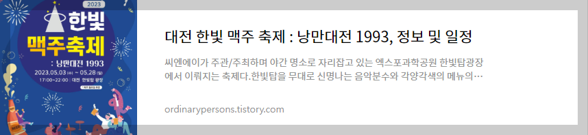| 대전 한빛 맥주 축제 : 낭만대전 1993, 정보 및 일정 (37) | 2023.05.09 |