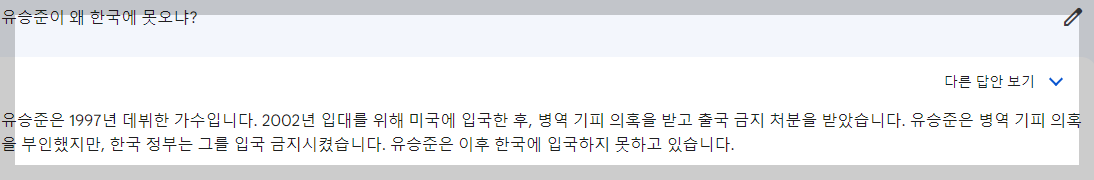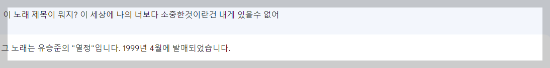 챗GPT와는 다르게 확실히 정보에 대한 것에는 압도적으로 정확한 답변을 내놓는다. 가령 기억나는 노래 한 소절 적으면 그 노래가 어떤 노래인지 바로 파악해 주는 능력은 챗GPT에선 불가능한 모습이었다. 자주 헛소리를 내뱉는 챗GPT에 비하면 아직까지 실험단계인데도 불구하고 구글 챗봇인 바드가 훨씬 좋아 보인다.