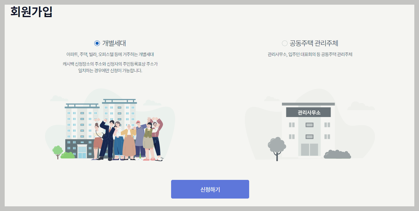 - 개별세대를 선택하고 신청하기를 눌러준다.