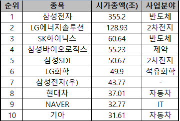 ▷시가총액 상위 TOP 10